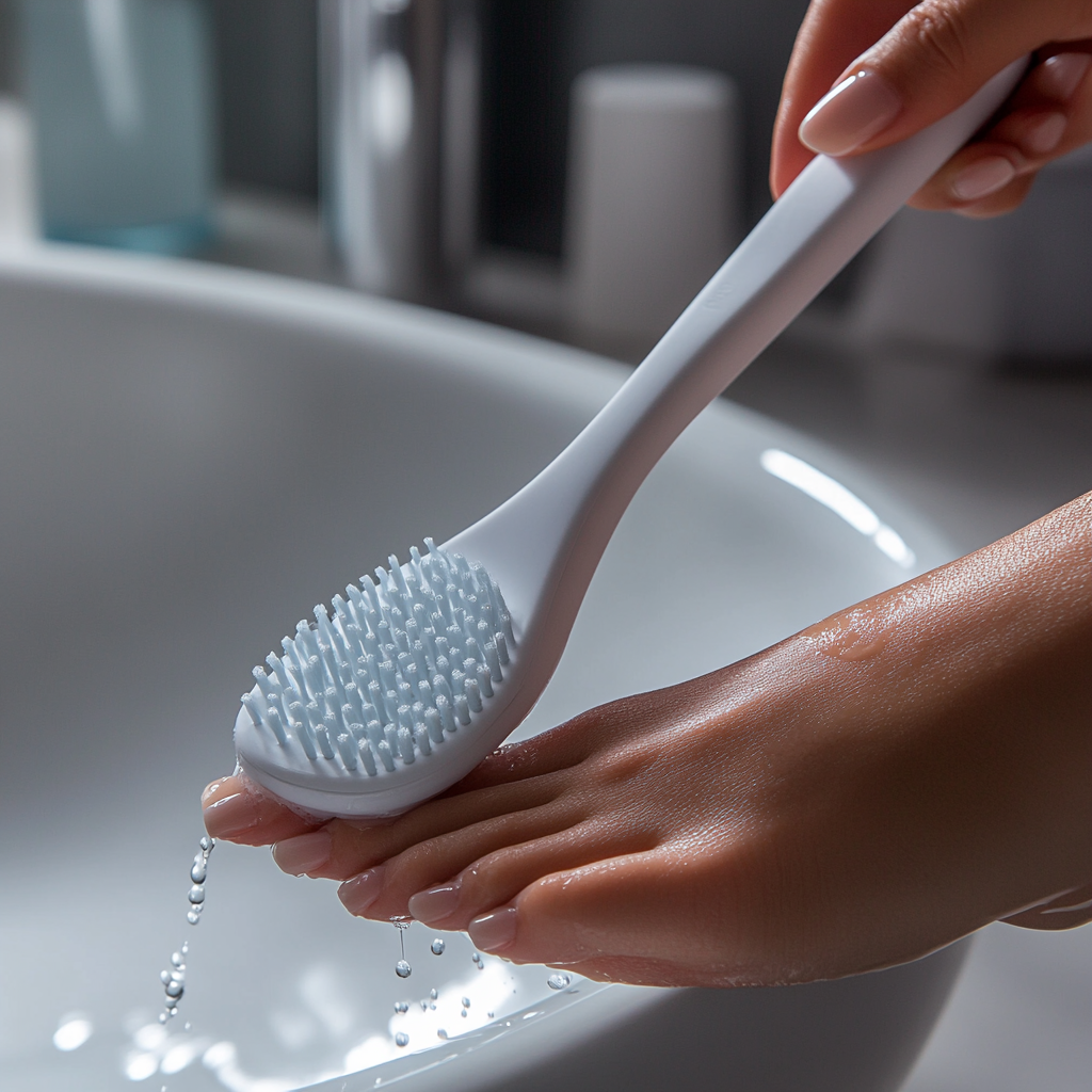 A: ๋ฐœ์„ ๊นจ๋—ํ•˜๊ณ  ๊ฑด์กฐํ•˜๊ฒŒ ์œ ์ง€ํ•˜๋Š” ๊ฒƒ์ด ์ค‘์š”ํ•ฉ๋‹ˆ๋‹ค. ๊ณต์šฉ ์ƒค์›Œ์‹ค์—์„œ๋Š” ๊ฐœ์ธ ์Šฌ๋ฆฌํผ๋ฅผ ์ฐฉ์šฉํ•˜๊ณ , ํ†ตํ’์ด ์ž˜ ๋˜๋Š” ์‹ ๋ฐœ๊ณผ ์–‘๋ง์„ ์„ ํƒํ•˜๋Š” ๊ฒƒ์ด ์ข‹์Šต๋‹ˆ๋‹ค.